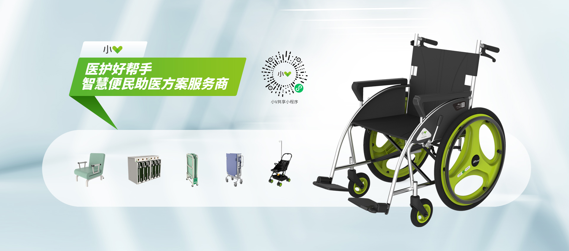 小V共享項(xiàng)目,主要面向有醫(yī)護(hù)需求的人群提供全天侯共享輪椅、急救推車、陪護(hù)床等醫(yī)護(hù)設(shè)備,解決醫(yī)護(hù)機(jī)構(gòu)設(shè)備數(shù)量少、服務(wù)時(shí)間短、租賃手續(xù)繁瑣等痛點(diǎn),大幅提升患者就醫(yī)便利性。